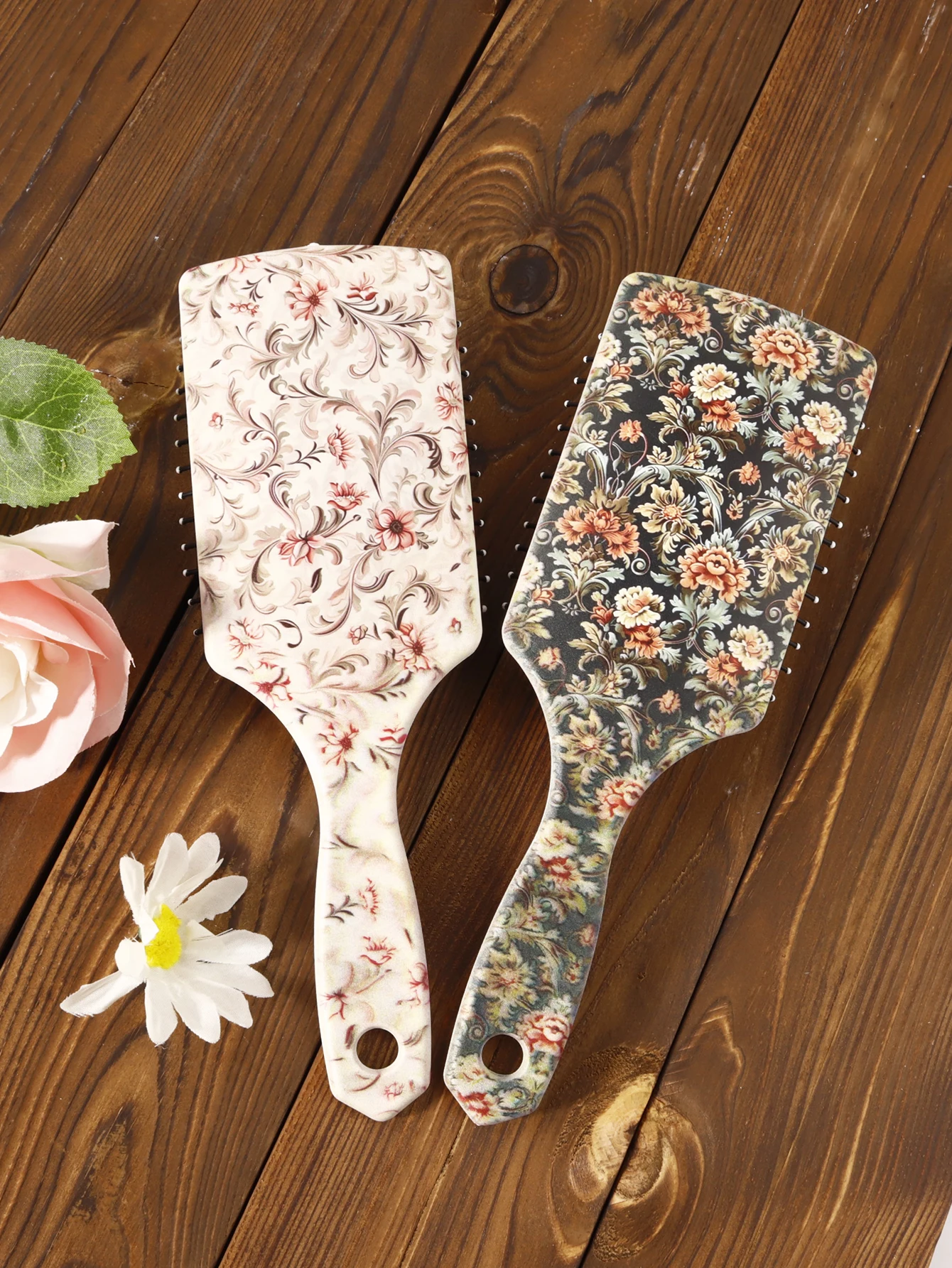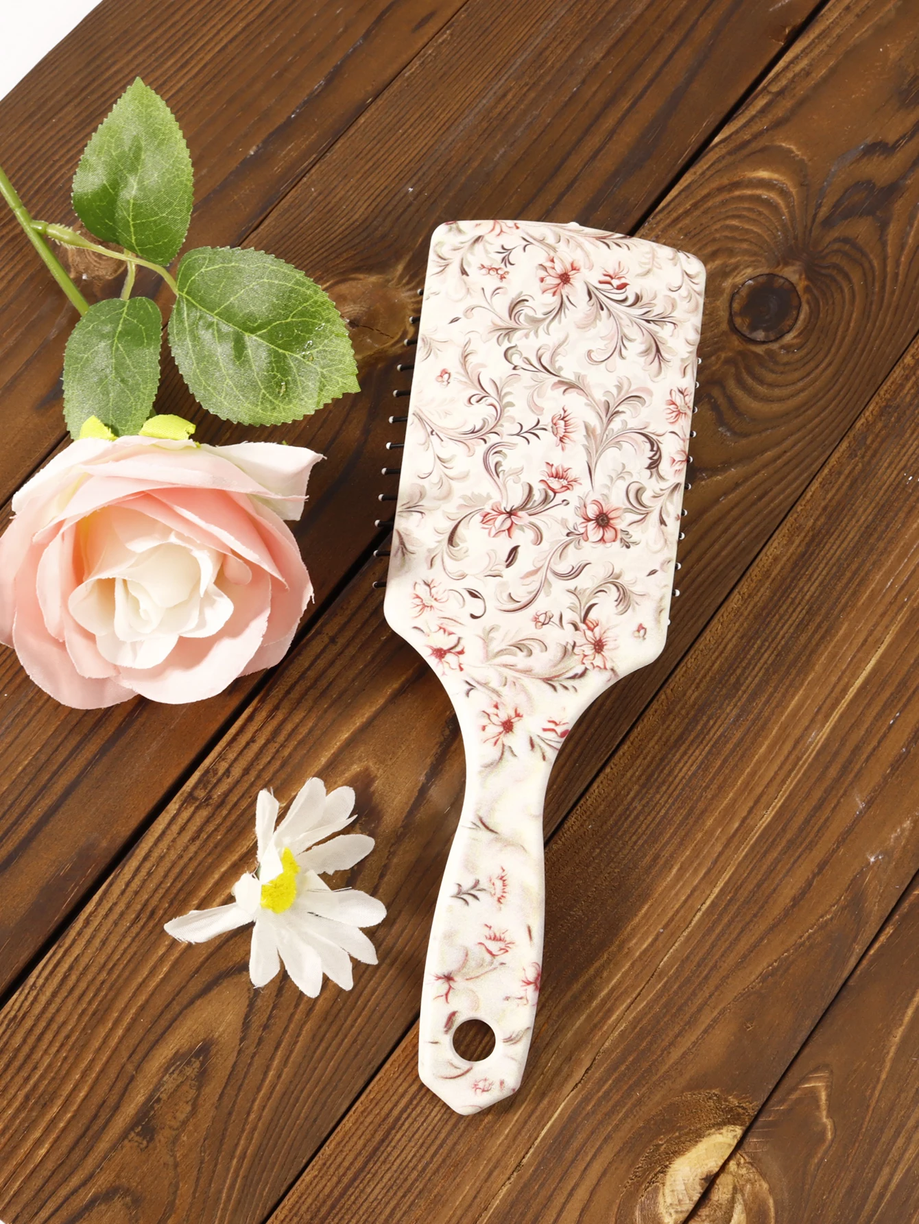 Achieve smooth, silky, and frizz-free hair with our professional floral paddle brush. Perfect for wet or dry hair, this detangling brush gently glides through knots, leaving your hair straight, shiny, and effortlessly manageable.