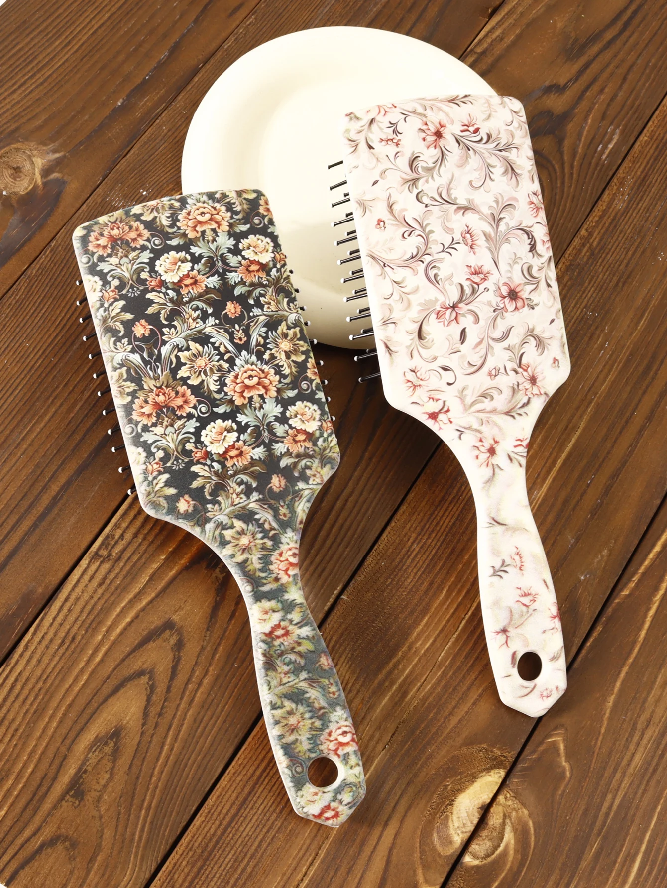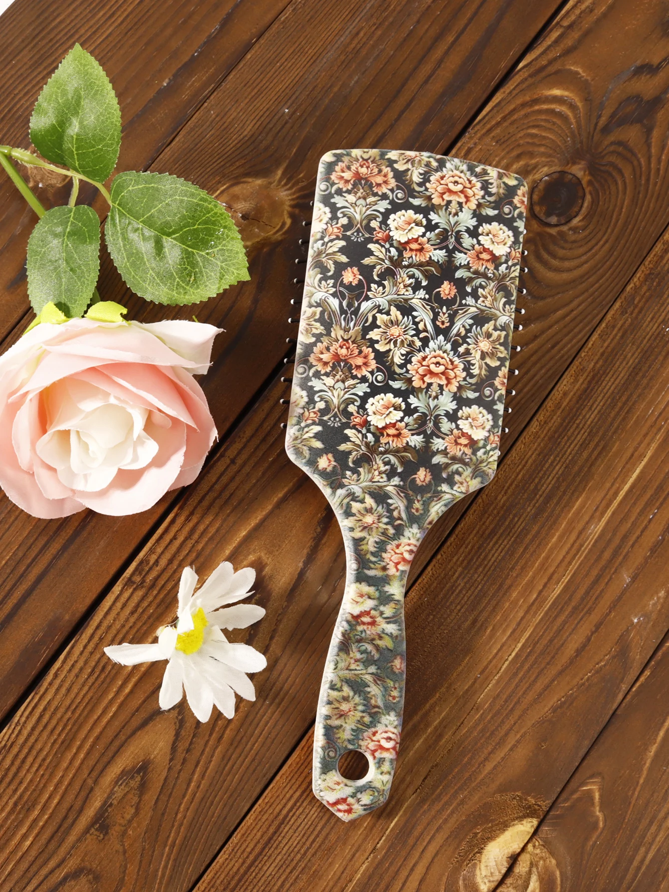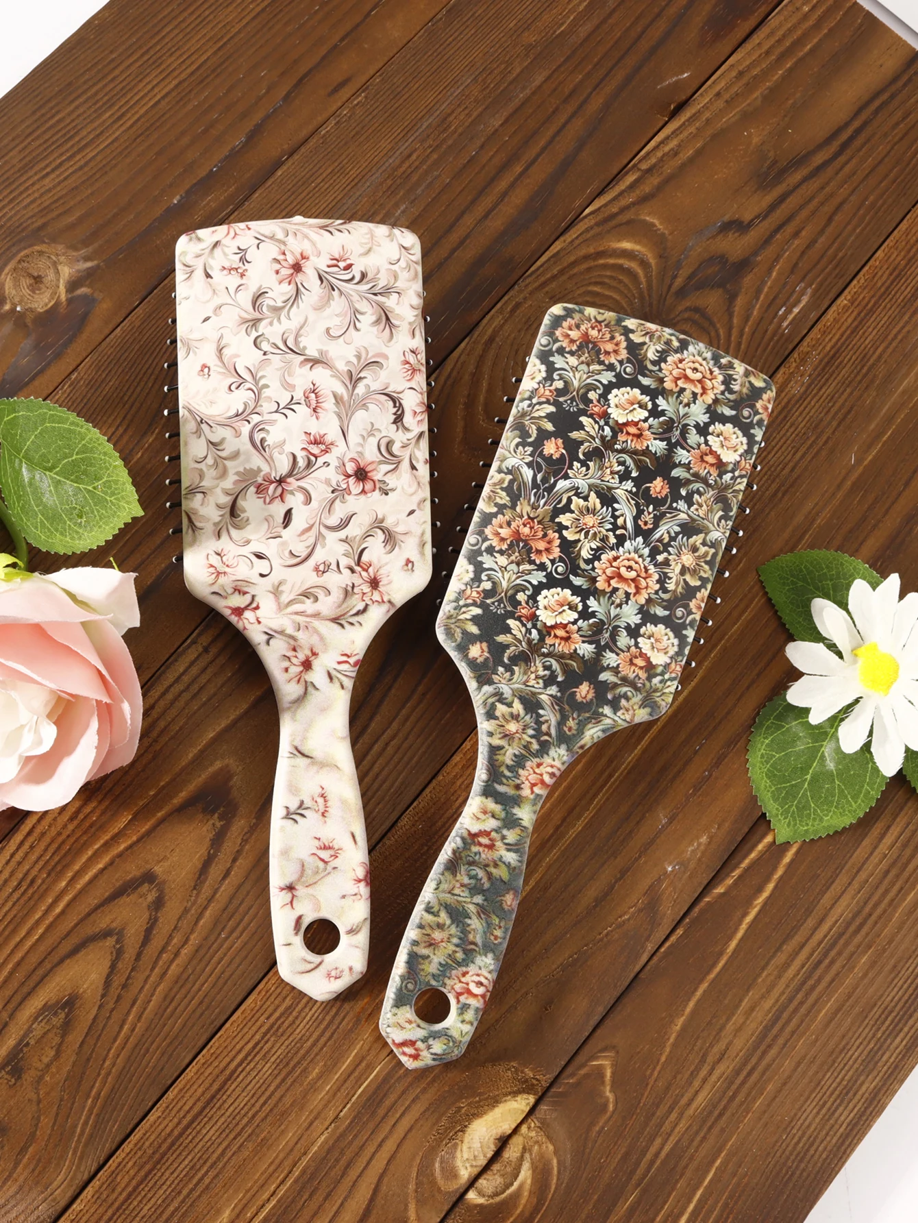 Professional Floral Paddle Hair Brush – Detangling & Straightening Brush for Wet & Dry Hair