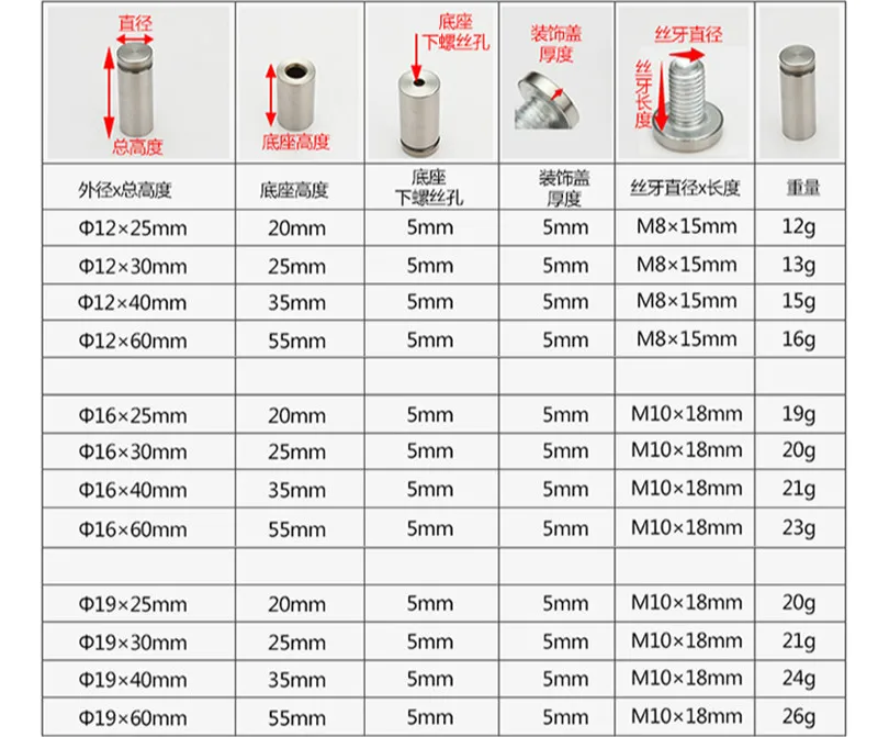 Secure your signs and panels with this 10PCS set of 12mm stainless steel glass standoffs, perfect for acrylic, billboard, and display mounting. Durable, rust-resistant, and easy to install.