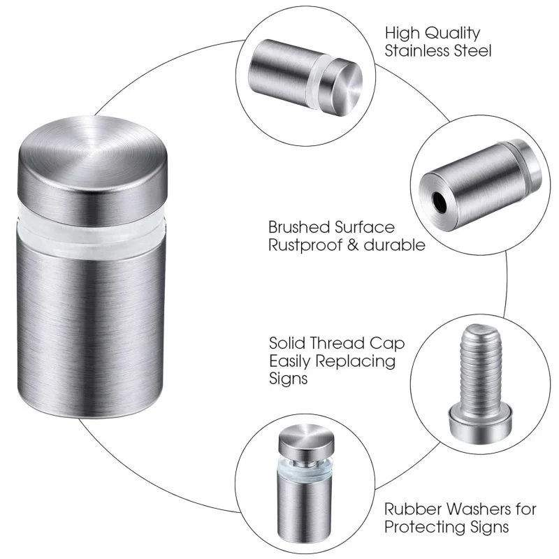 Securely mount signs, glass, or acrylic panels with these 10 durable stainless steel standoff screws. Perfect for home, office, or commercial advertising displays.