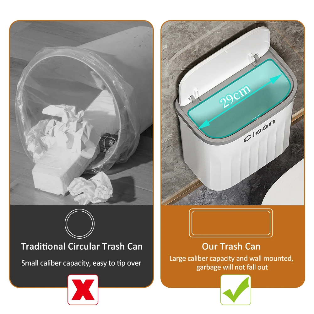 Wall Mounted Press-Type Trash Can with Lid – 12L/16L Hanging Wastebasket for Bathroom, Toilet, or Kitchen