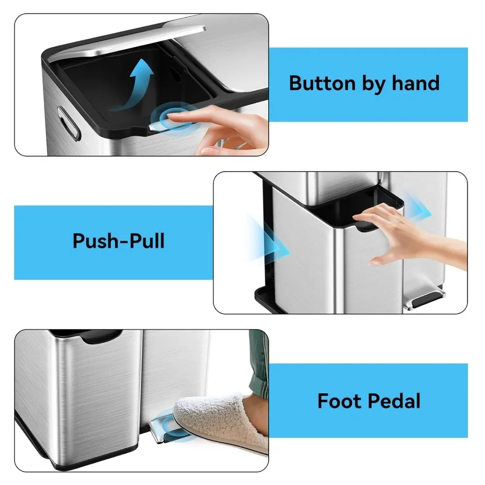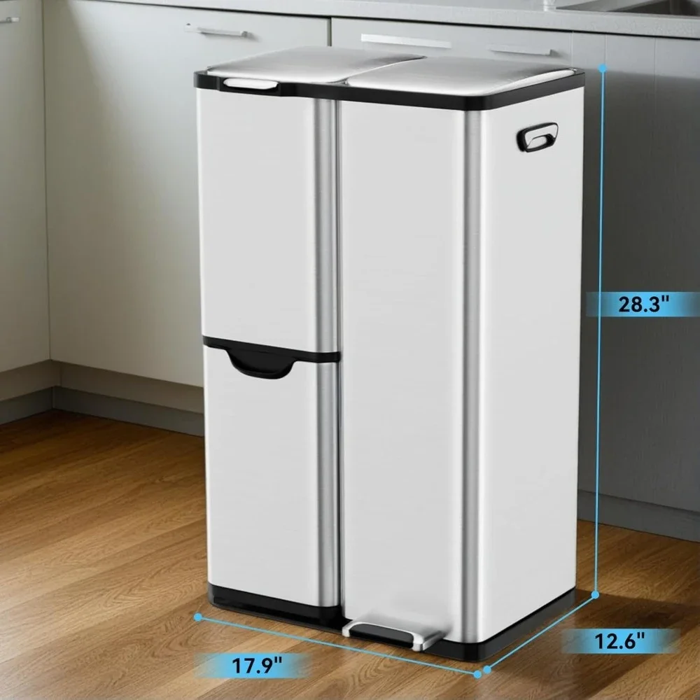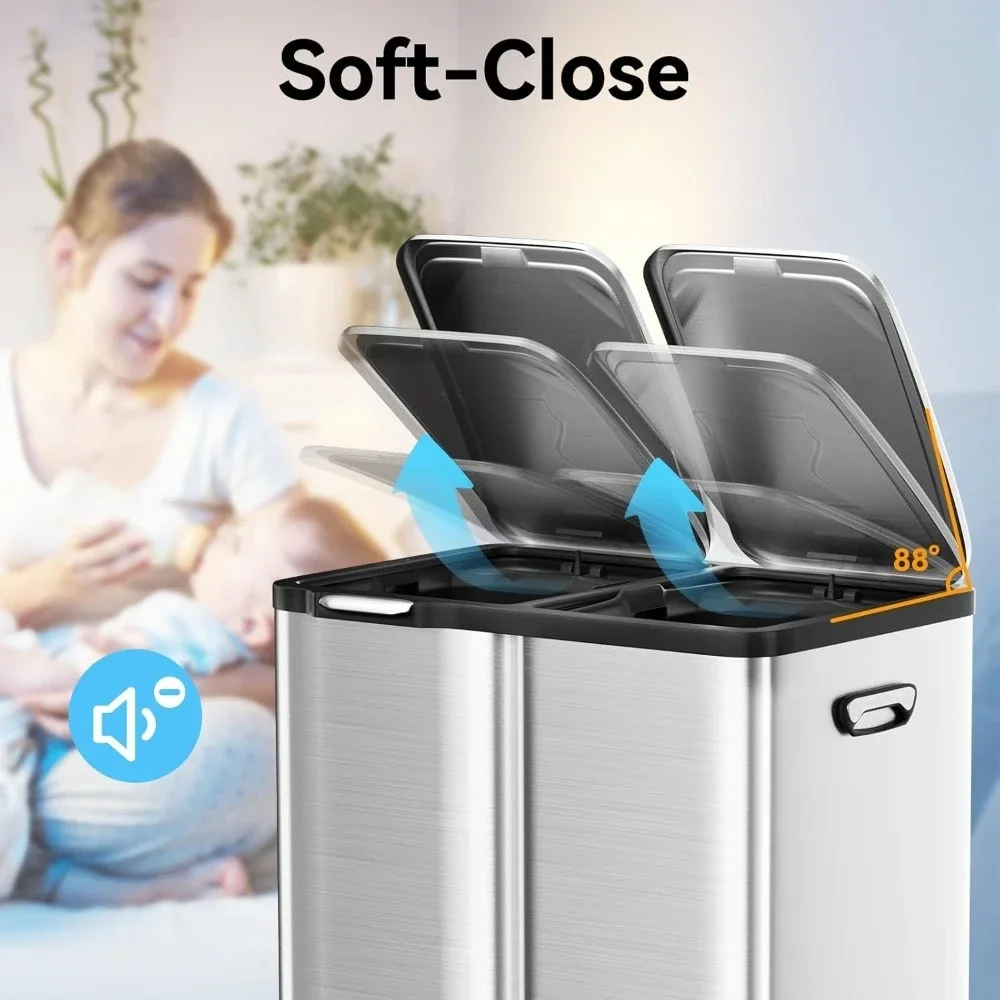 Upgrade your kitchen with this 16-gallon 3-in-1 trash can featuring dual compartments for recycling and waste, soft-close lids, and a durable, fingerprint-resistant finish for a cleaner, smarter home.