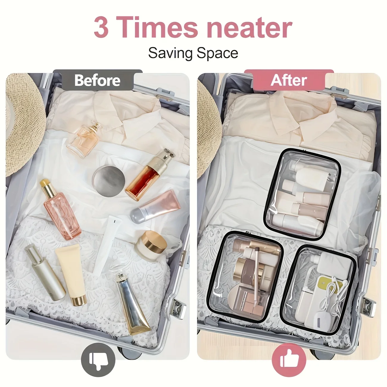 Stay organized on the go with this large transparent PVC makeup bag featuring a secure zipper closure. Lightweight, spacious, and perfect for storing cosmetics, toiletries, and travel essentials. Ideal for home use, travel, and daily organization.