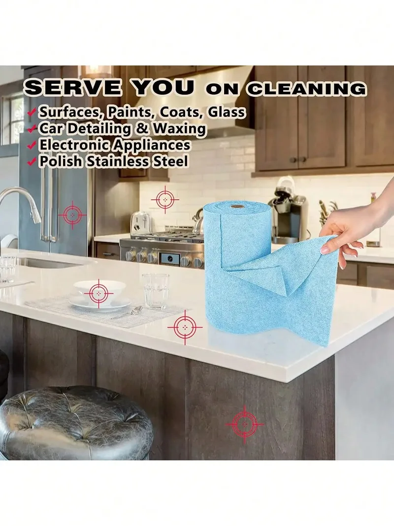 Keep your kitchen spotless with this 50-piece microfiber tear-towel roll. Reusable, super absorbent, and perfect for dishwashing, tableware, and all-purpose cleaning. Eco-friendly and durable.