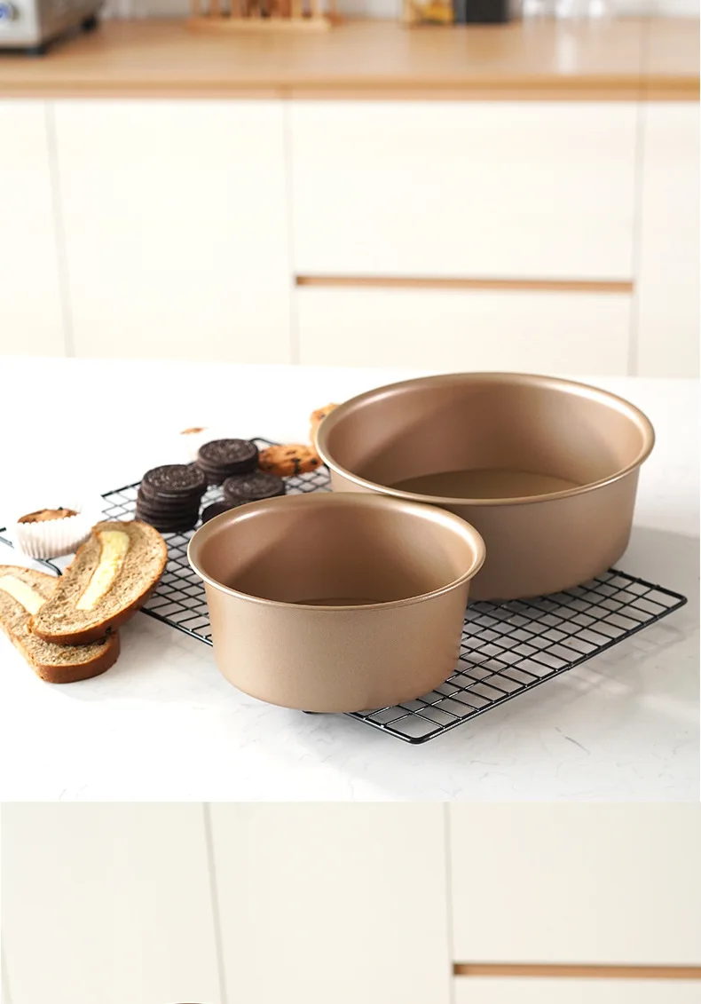 6/8 Inch Golden Round Cake Mold – Carbon Steel Cheesecake & Chiffon Pan with Removable Bottom