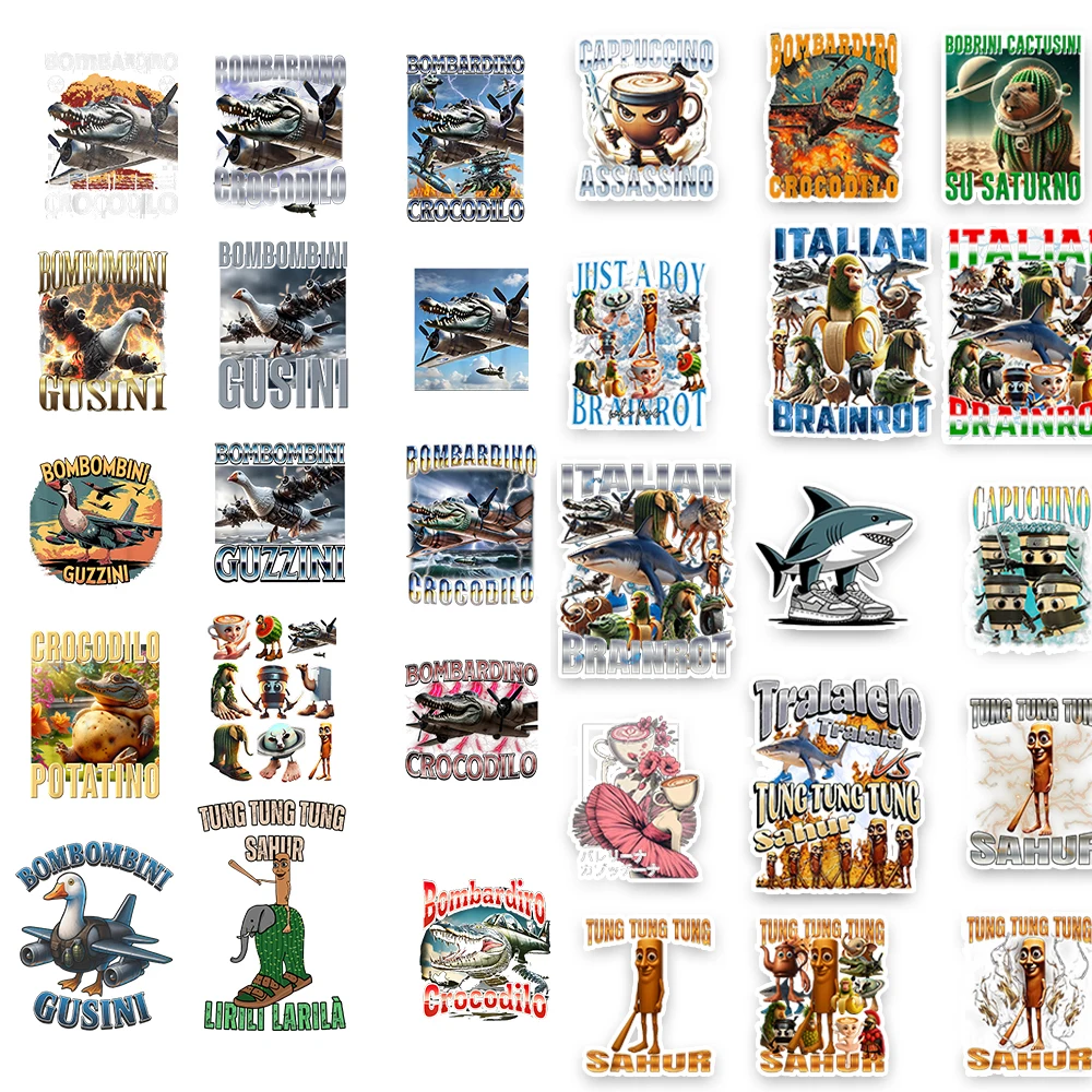 60PCS Abstract Animal Stickers Tung Tung Tung Sahur Italian Brainrot Animals Cartoon Decal DIY Luggage Phone Cup Guitar Decal