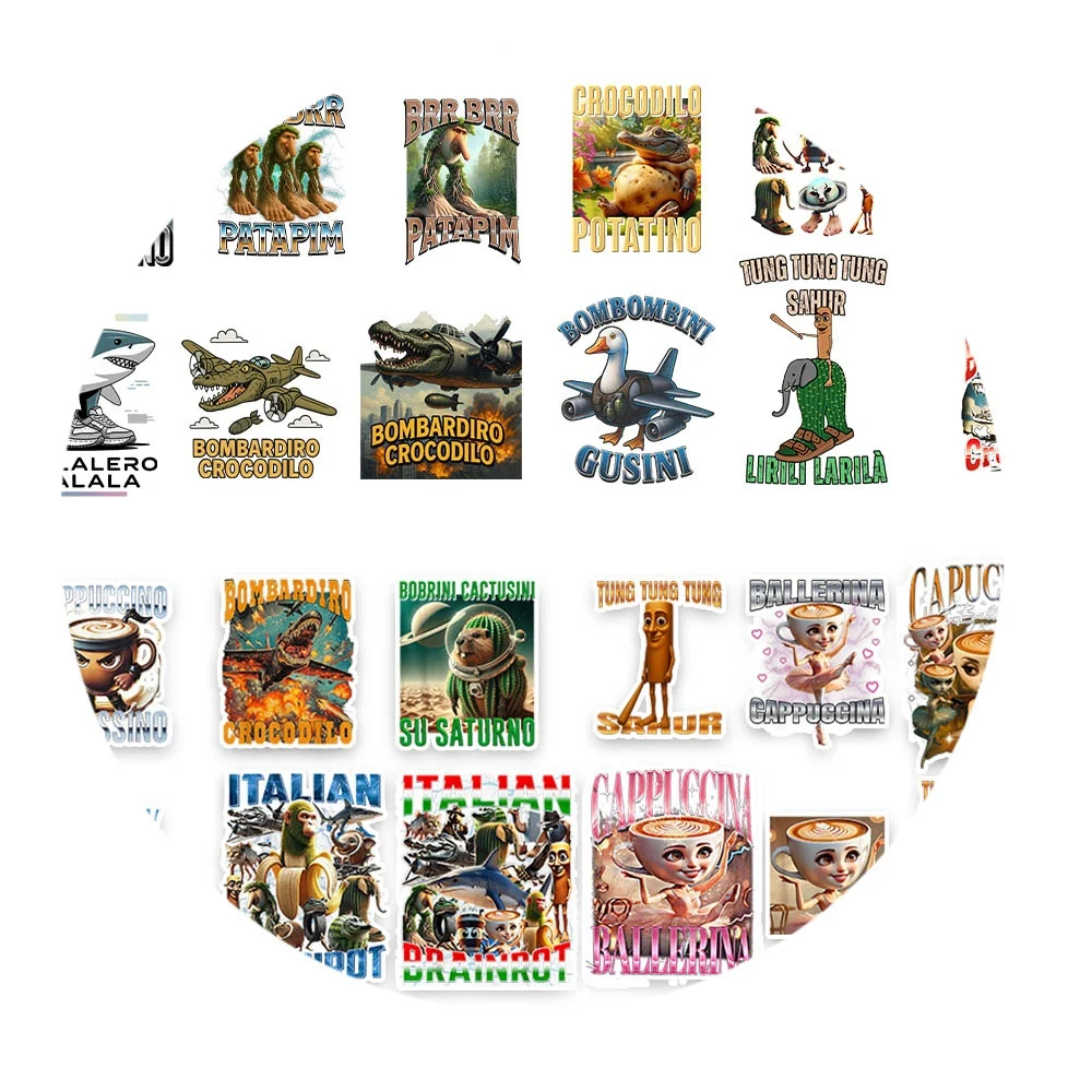 Explore this 60PCS pack of abstract cartoon brainrot animal stickers—perfect for decorating luggage, phones, cups, guitars, laptops and more. Durable, waterproof, vibrant and ideal for DIY enthusiasts.