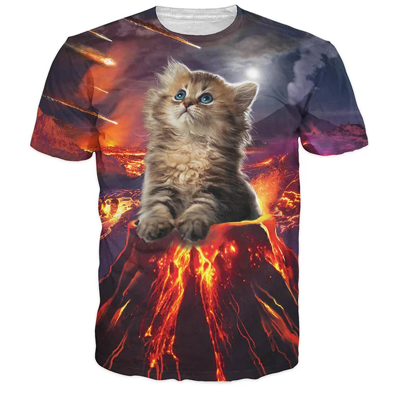 Unleash your wild side with this hilarious 3D cat print T-shirt! A perfect blend of comfort and streetwear style for men and kids. Great for everyday fun or standout fashion.