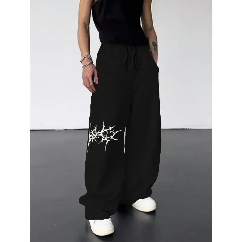 Autumn and Winter Men's Black Jogging Pants Gothic Style Printed Text Pattern Street Sweatpants Casual Drawstring Trousers
