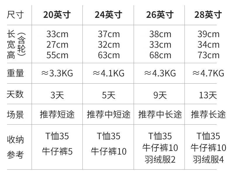 26inch size:38*33*68cm 4.3kg
