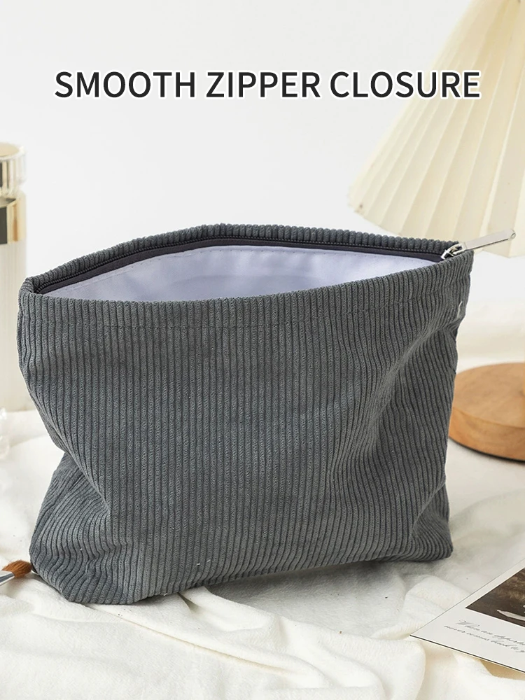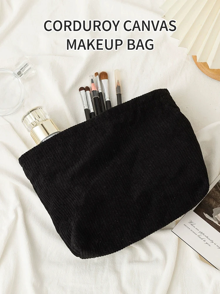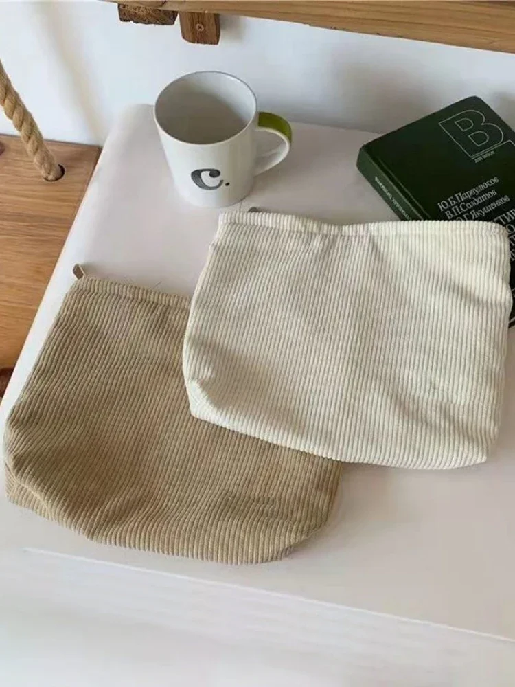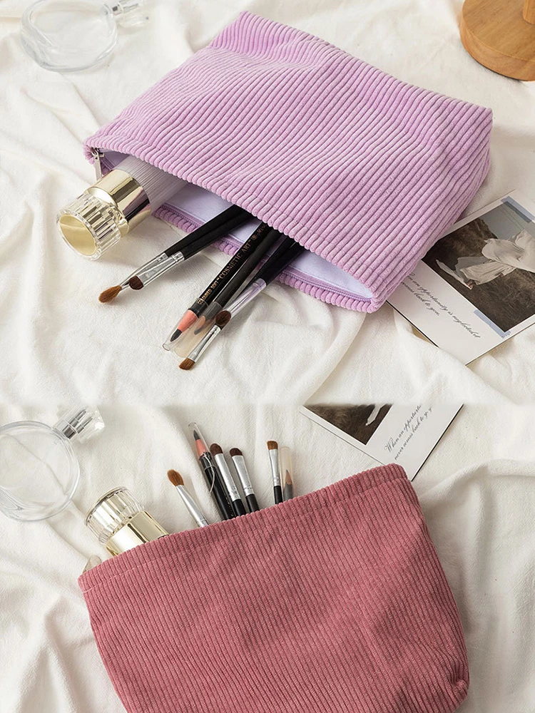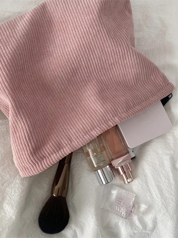 Corduroy Travel Cosmetic Bag Portable Makeup Storage Bag Purses Women Large Capacity Zipper Make Up Organizer Storage Clutch