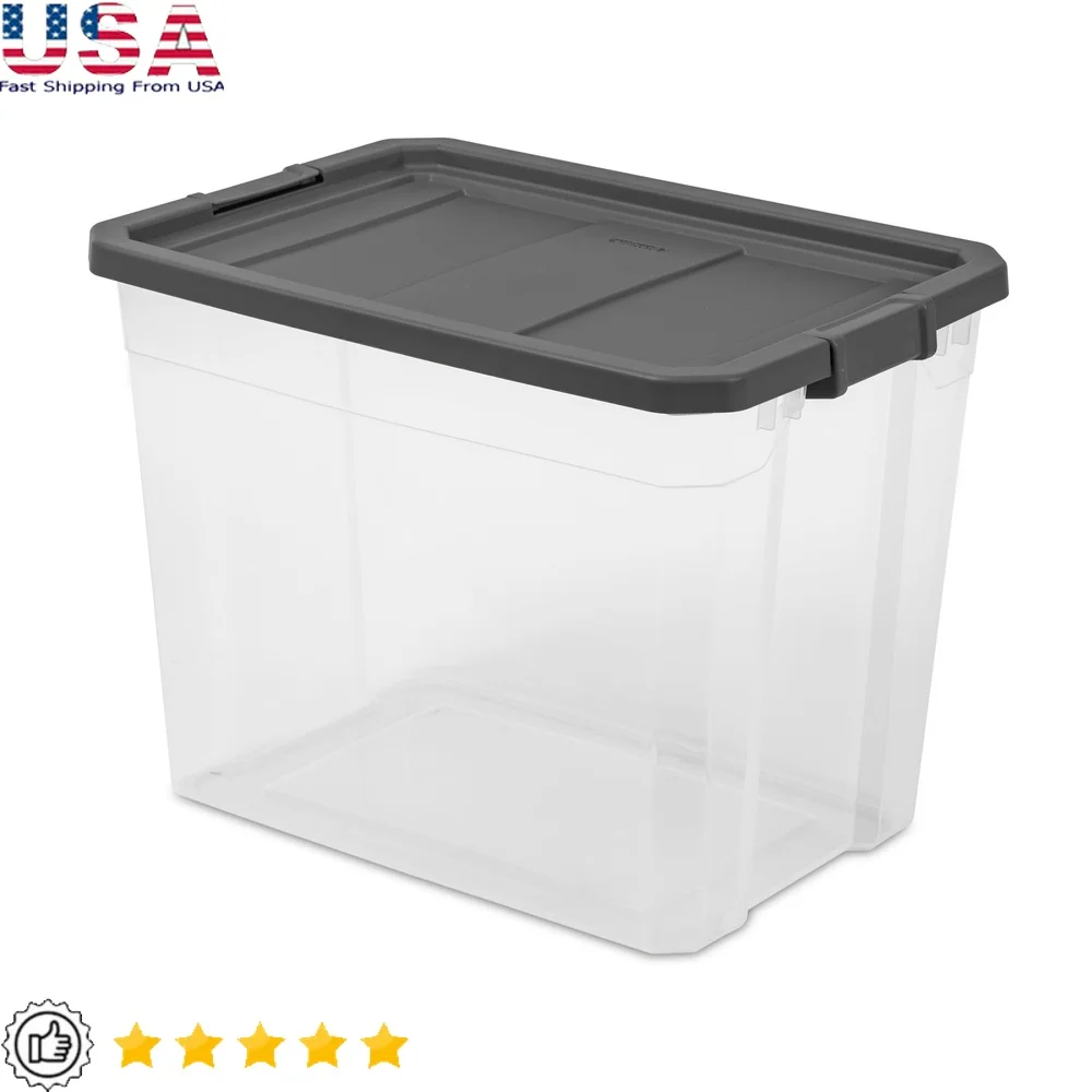 108 Quart Stacker Box, Durable Clear Plastic Bin with Lid, Dark Gray