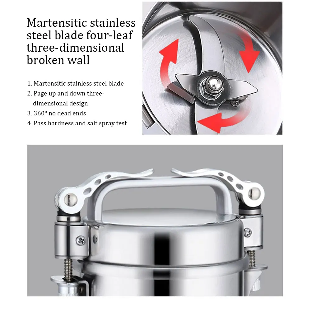 Grind grains, spices, and herbs effortlessly with this 150g electric grain grinder. Durable stainless steel multi-blade design delivers high-efficiency wall-breaking performance for your kitchen.