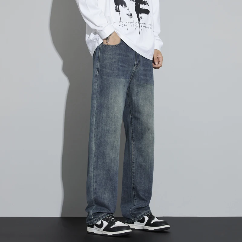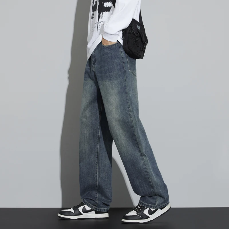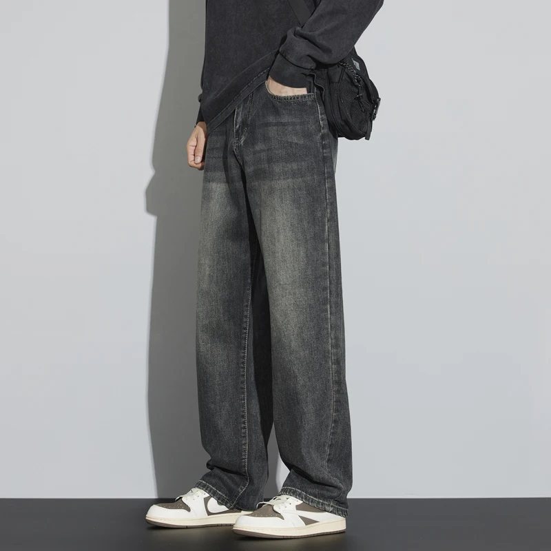 Stay warm and stylish with these mens winter fleece wide leg jeans featuring thick velvet lining, a loose straight fit, and premium denim design inspired by Korean fashion. Perfect for cold weather comfort and casual streetwear style.
