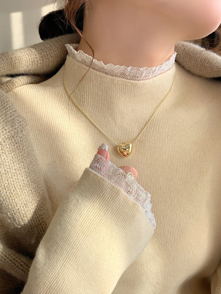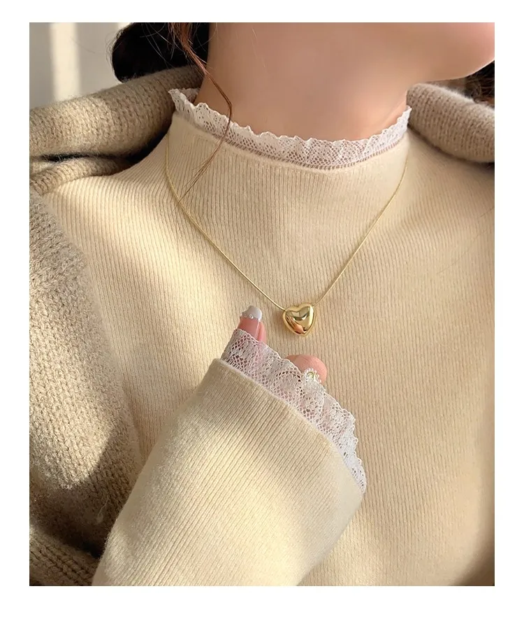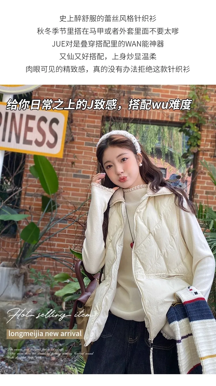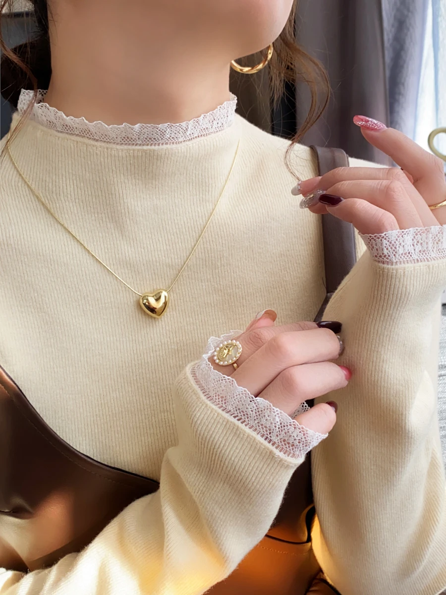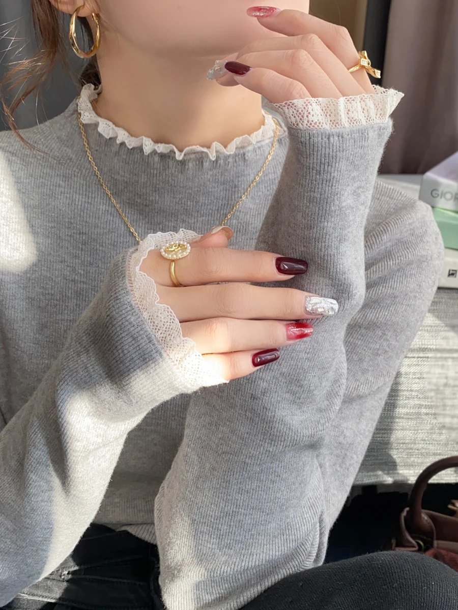 Stay cozy and stylish this season with our 2025 lace semi high neck knit sweater for women. Perfect for autumn and winter, this slim fit mid-length top blends elegance with comfort for everyday wear.