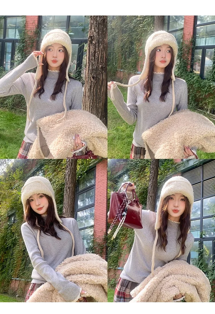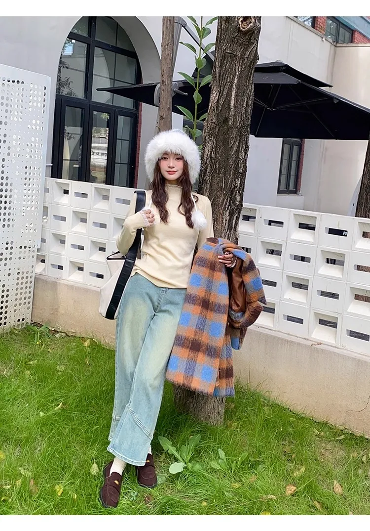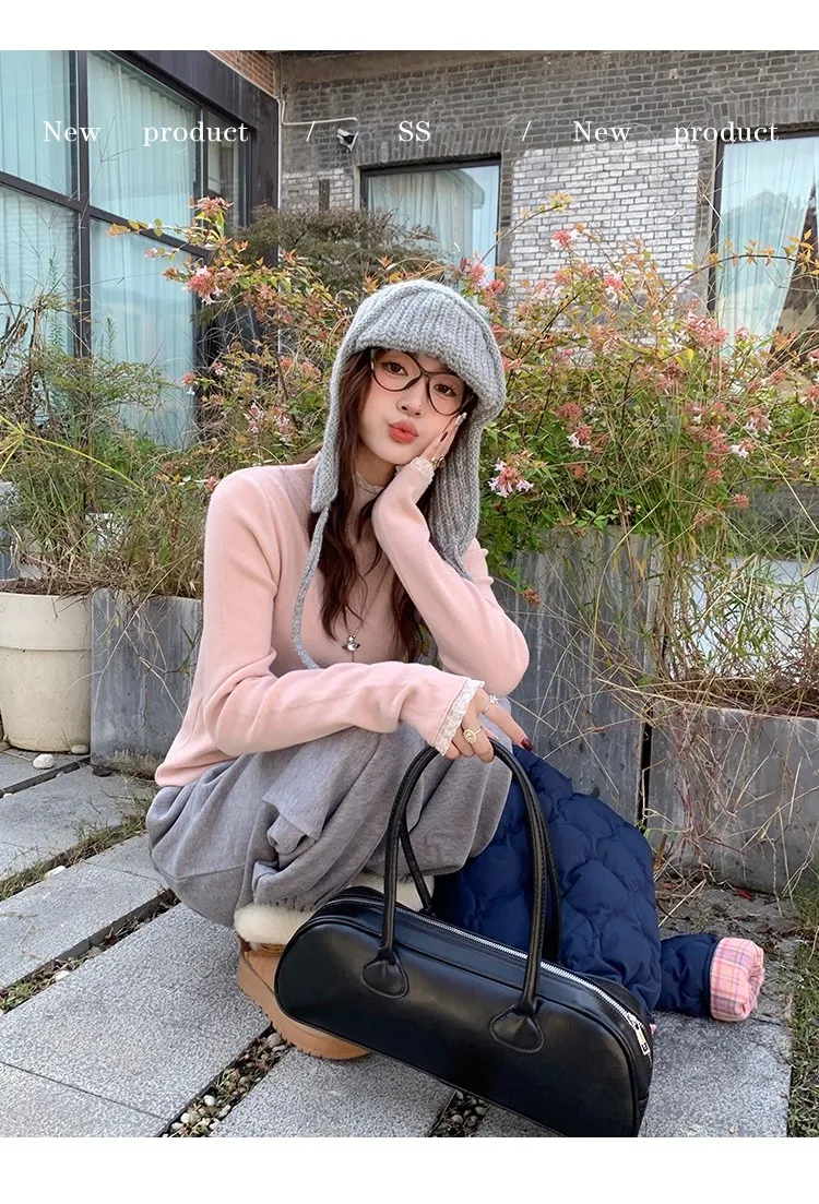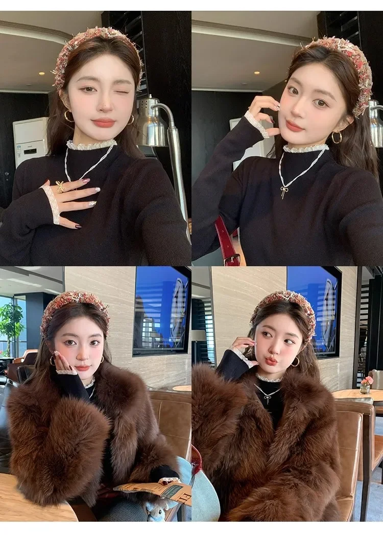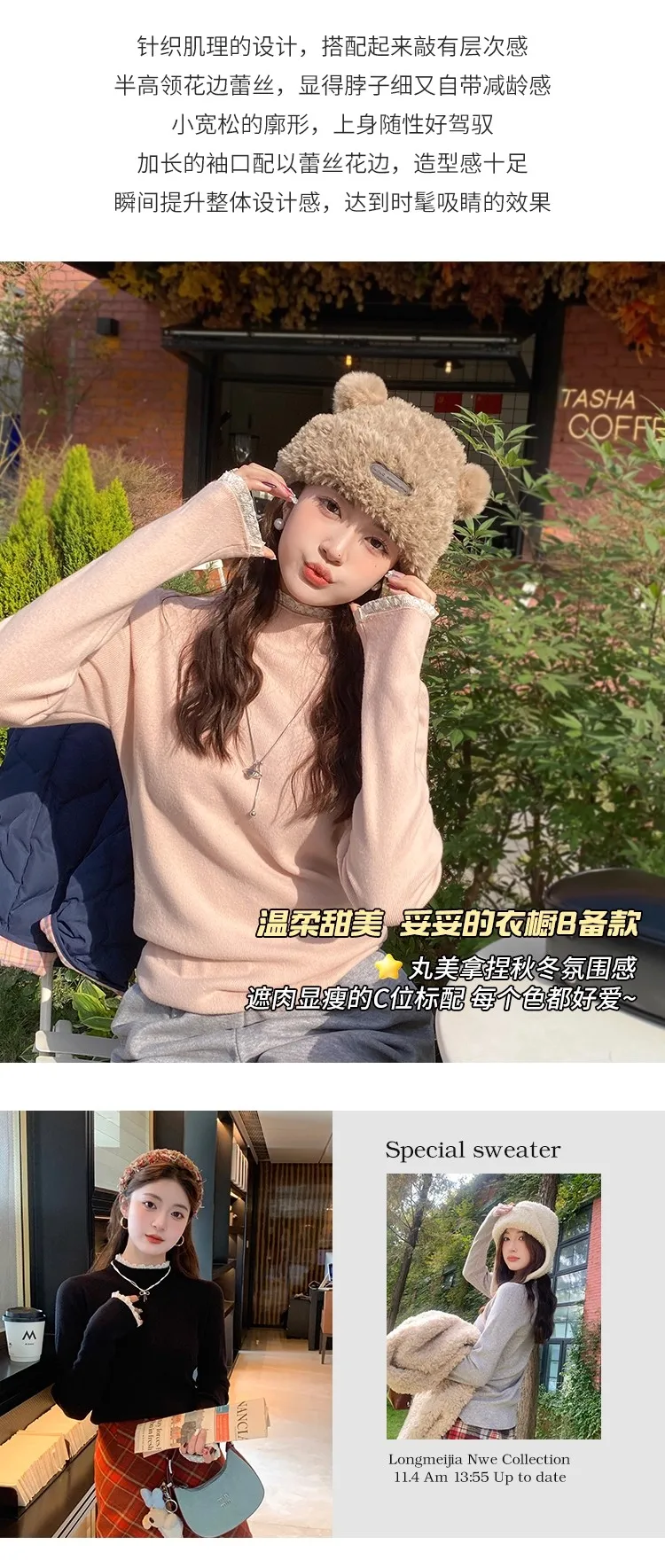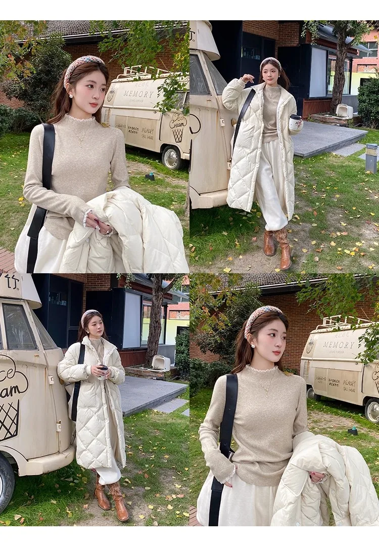 Stay cozy and stylish this season with our 2025 lace semi high neck knit sweater for women. Perfect for autumn and winter, this slim fit mid-length top blends elegance with comfort for everyday wear.