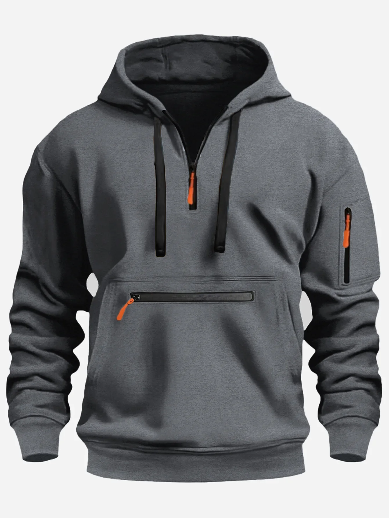 Man Leisure Sports Hoodie Retro Harajuku Long Sleeve Zipper Multi-Pocket Sweatshirts Casual Loose Hooded Shirt Men Clothing