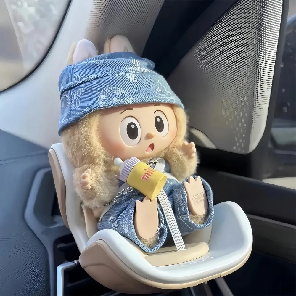 Enhance your Labubu doll collection with this miniature car seat! Designed for 15/17cm dolls, it clips onto car air vents, doubling as a stylish ornament and display stand. Perfect accessory for doll enthusiasts and collectors.