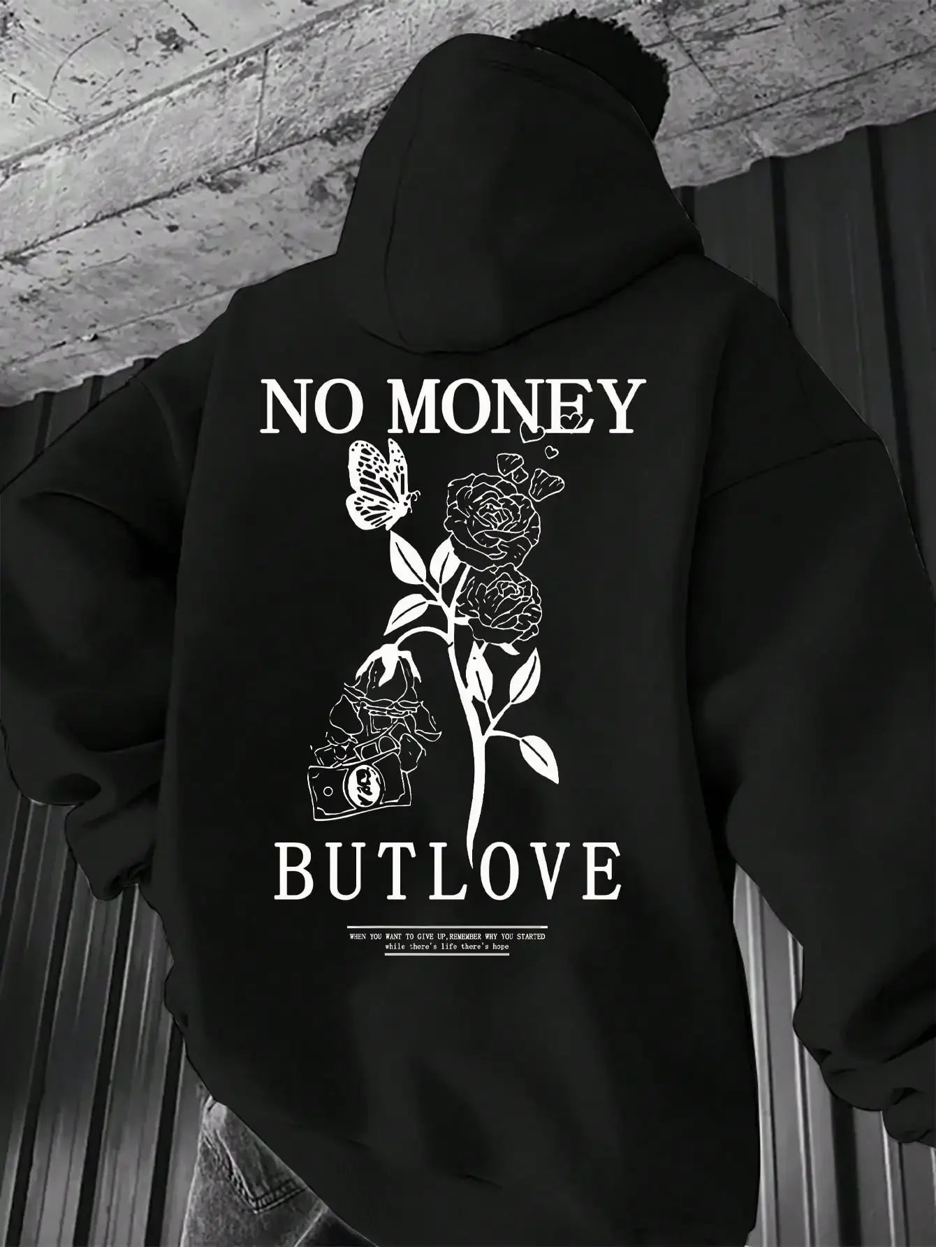 New loose men's floral letter print adult hooded fleece sweatshirt autumn and winter comfortable all-match sweater pullover