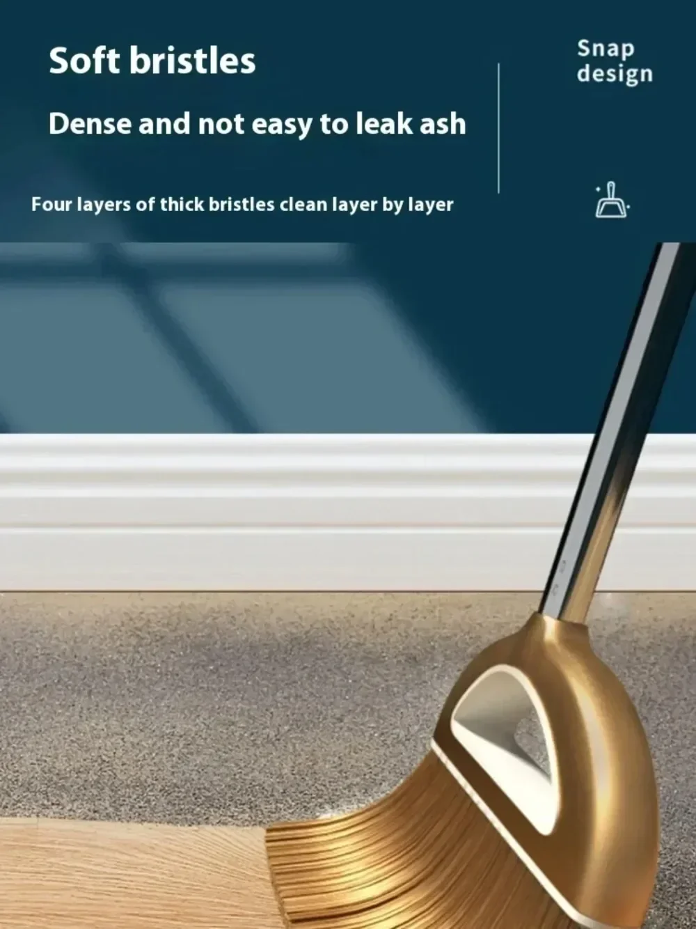 6. **Edge-Cleaning Design**: Dustpan has a rubber lip that fits snugly to the floor, ensuring no dust or dirt is left behind.