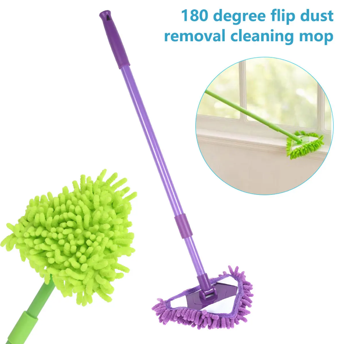 6.180 degrees rotatable, the triangular mop is easy to reach hard-to-reach corners, and can be used to clean bathtubs, toilet surfaces and backs, mirrors, glass, ceilings, etc.