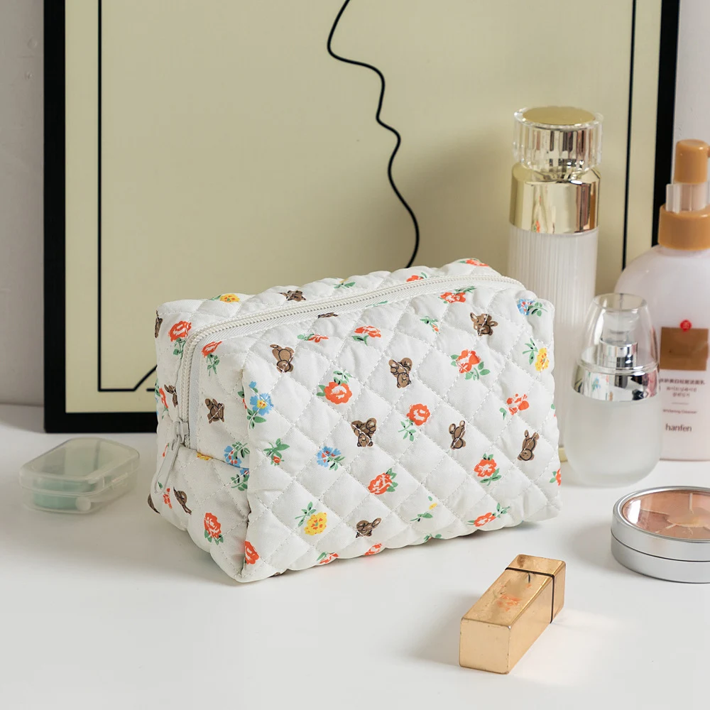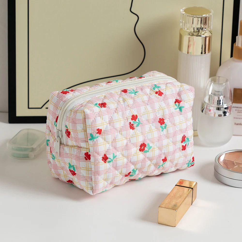 Cute Floral Quilted Makeup Bag for Girls – Travel Cosmetic & Toiletry Organizer