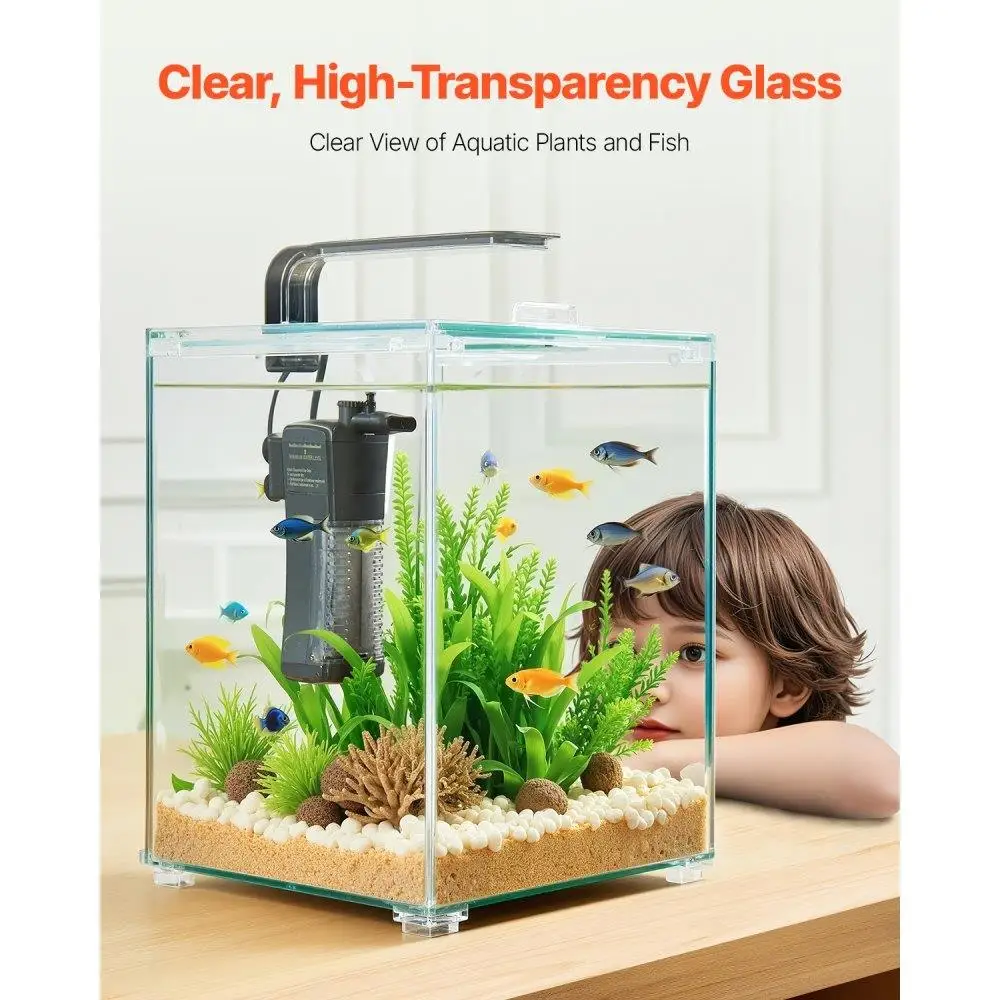 Transform any space with the AquaGlow™ 5-gallon smart aquarium—featuring a self-cleaning system, crystal-clear glass, and a vibrant 3-color LED light display. Perfect for fish lovers and stylish interiors.