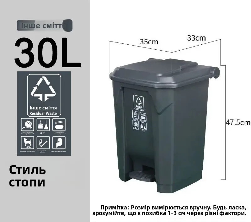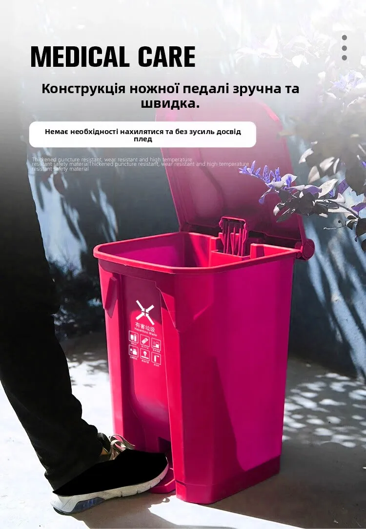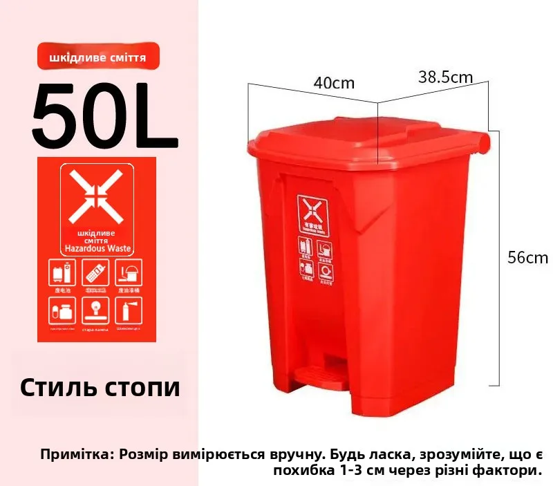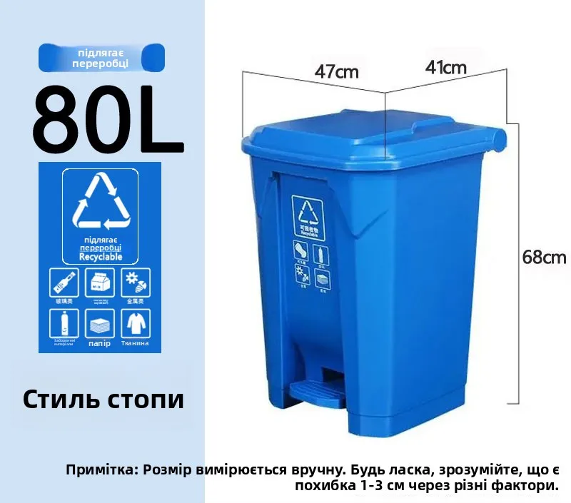 Keep your kitchen and home clean with the Thiened Foot Pedal Trash Can. Available in 20L, 30L, 50L, and 80L sizes with 4 stylish colors, perfect for recyclable, harmful, and general household waste. Durable, hygienic, and easy to use.