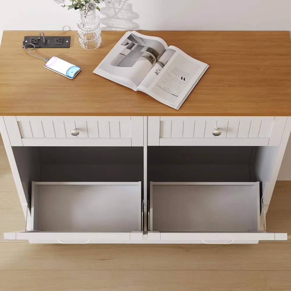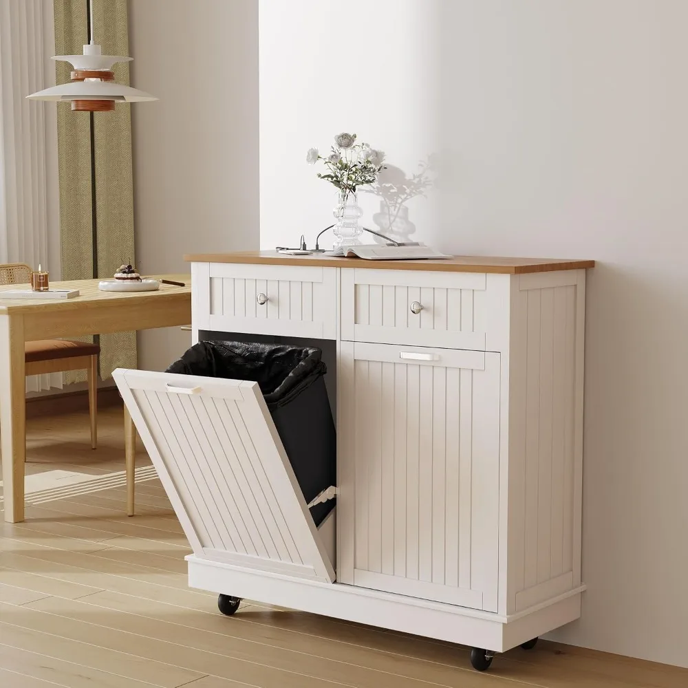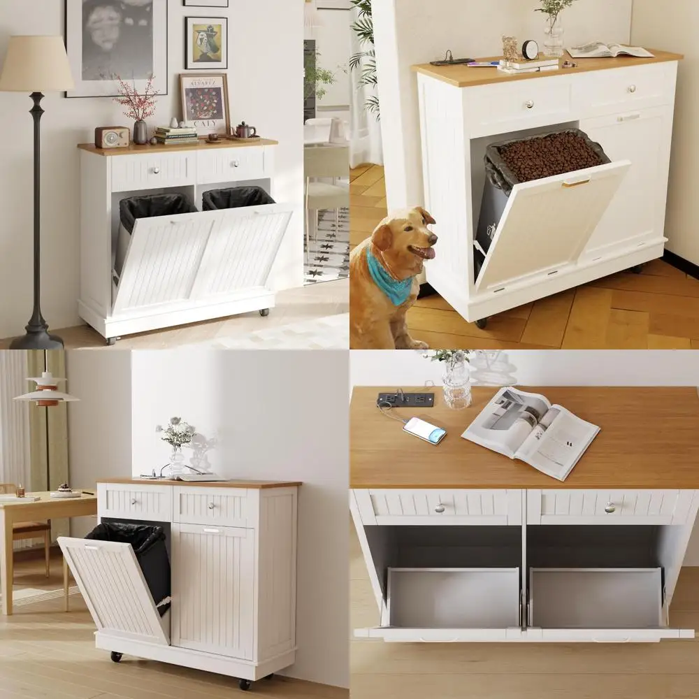 Space-Saving Tilt-Out Trash & Recycling Cabinet with 20-Gallon Capacity and Built-In Power Outlets
