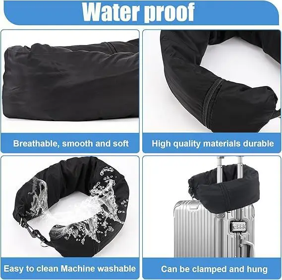 Experience ultimate travel comfort with this fillable U-shaped neck pillow and waterproof storage bag. Use your clothes as pillow filling to save space while keeping essentials protected and organized during every trip.