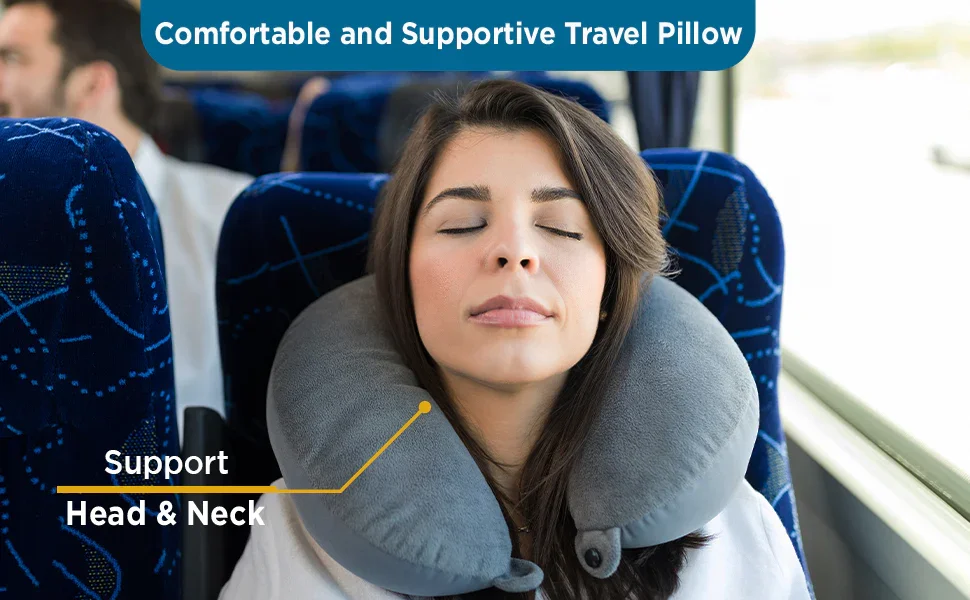 Travel Neck Pillow with Snap Button – Soft, Supportive & Perfect for Airplane, Car & Office