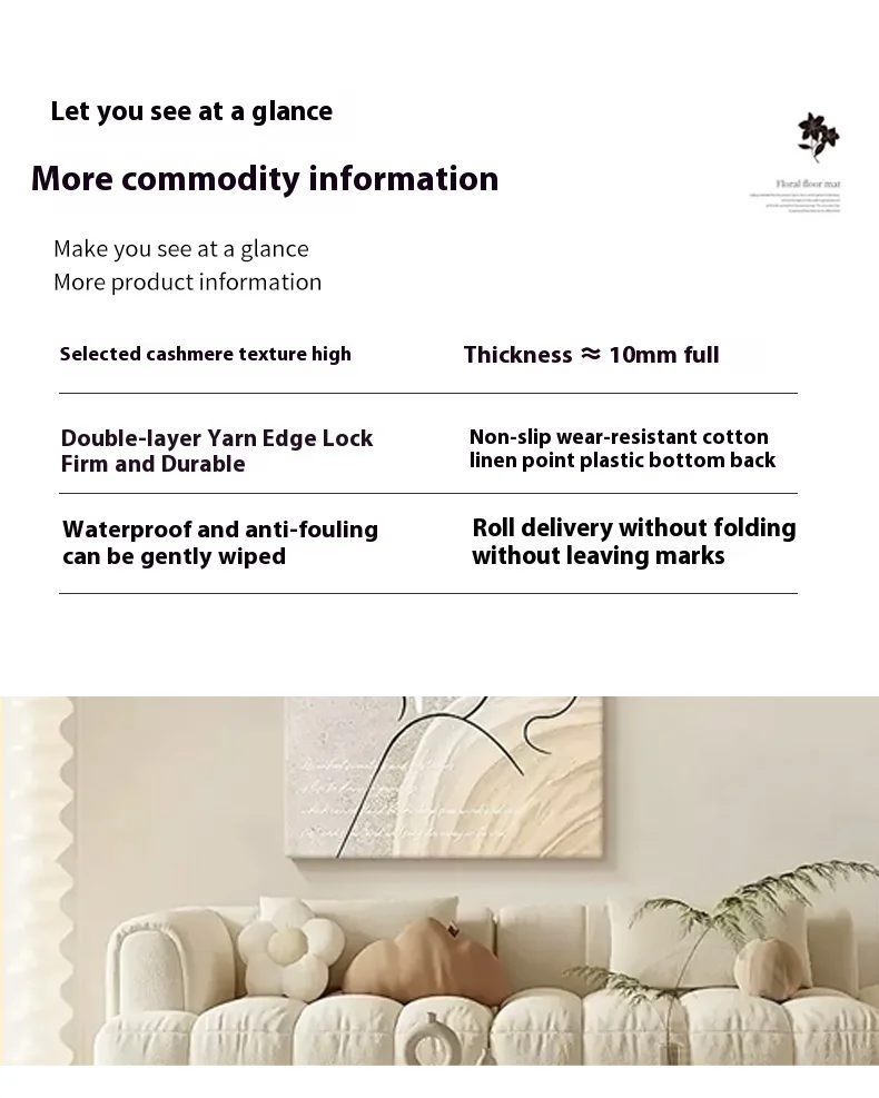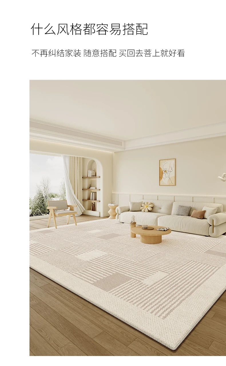 VIKAMA Luxury Cream Carpet Rug for Living Room & Bedroom – Soft Thickened Home Decor Mat